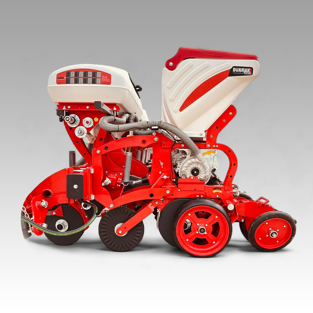 Pnömatik Ekim Makinası sıra üzeriine ekim yapılması gereken her türlü tohumu(pancar, mısır, ayçiçeği, pamuk, soğan, kavun, karpuz, yer fıstığı vb.) hassas bir şekilde sıra arası ve istenen ölçüde sıra üstü mesafesinde ekilmesini sağlayan bir makinedir. Ünite arası mesafeler Ayar Pimleri yardımı ile herhangi bir anahtar gereksinimi duymadan 45 cm, 50 cm, 55 cm, 60 cm, 70 cm, 90 cm ve 110 cm ye ayarlanabilir.